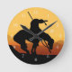 End of the trail silhouette at sunset wall clock