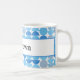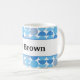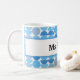 Retro coffee mug featuring mid century modern half moon blue pattern.