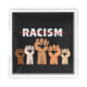 Social justice themed design features redlined RACISM text with multi shade raised fists of protest.