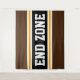 This sporty, athletic design features bold END ZONE text inside a highlighted wide black stripe with double white and yellow orange racing stripes against dark brown outer stripes. The text in this design can be personalized.