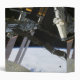 The end effector of Endeavour's robot arm appears amidst elements of the International Space Station
