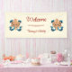 This Tibetan wedding reception board features a traditional yellow gold knot of happiness with blue ribbons and a wedding welcome text in an elegant script on a modern cream background.