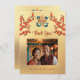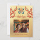 This Tibetan Wedding thank you card features an endless knot in gold , red cherry blossoms and your photo on a golden background. Matching wedding invitation available.