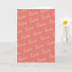 This card celebrates love through color and simple repetition. The background is a warm coral tone that sets a soft, romantic mood. Across the card, the word “love” appears again and again in creamy white script, written in a flowing, handwritten style that feels personal and sincere. Each word varies slightly, giving the design a natural rhythm, like loving thoughts scattered across the page. The contrast between the coral background and the light lettering makes the message easy to read while keeping it gentle on the eyes. With no extra imagery, the repeated word becomes the focus, creating a comforting reminder of affection. This card is perfect for Valentine’s Day, anniversaries, or anytime you want to surround someone with a simple message of love.