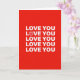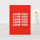 This card shows a solid red background that fills the whole front and sets a strong romantic mood ❤️. Across the center area, the words “LOVE YOU” appear five times in a row. The text is in white, all caps, and the letters look simple and even, with each line spaced neatly under the one above it. In the second line, the “O” in “LOVE” is replaced by a heart shape, outlined in white and filled with a slightly lighter red 💘. That small change makes your eye stop there and adds a sweet touch without changing the clear message. Overall, the design feels direct, confident, and full of affection. Share it to help someone feel loved this Valentine’s Day 😘.