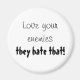 Enemy quotes hilarious sayings on kitchen magnets. Love your enemies they hate that! Funny black and white design on a round refrigerator magnet. Would make a great gift idea!