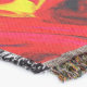 A quality printed throw has its advantages. This is a much finer weave throw than its loopier cousins, and though lighter, it is worth the investment for custom room accessorizing. The back is much prettier than the typical brown, and the fringe on the long sides very vivid, the selvage nicely done. Before photographing, I washed the throw in cold water, delicate, with a thicker woven throw the same size. On tumble dry low, this throw was dry in half the time as the other. This is a very practical quality if you use throws for furniture covers or to wrap up in frequently. The sleekness of the fabric makes it a great layer for accenting or protecting without the feeling of sitting on too much stuff. Perfect for napping or when you feel a light chill coming on. The color printing is beautiful and on this fabric, matched the design and color of my Photoshop image. This is an advantage for blending room fabrics and colors. The fringe on the short sides prints the colors from the design image and therefore varies from the side fringe. I streaked a white fractal line through the plaid pattern to give the illusion of weaving. This printed as crisp as an illusory thread, and put some white in the short side fringe, showing another advantage of print vs loomed- for artistic purposes, line lines, detail, and color integrity can be planned and preserved. My loomed throws have color limitations and more of a needlepoint texture. Print throws reproduce an exact image. The throw felt a little stiff straight out of the package, but this went away in the first delicate wash. Of course I searched the wash water for ink or bleeding and there was none.