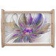 Energetic, Colorful Abstract Fractal Art Flower Serving Tray