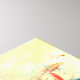 Vibrant swirls of color dominate the composition, with energetic strokes of yellow, blue, and red weaving through a soft pink and beige background. The abstract arrangement conveys a sense of movement and chaos, evoking a lively, dynamic energy.