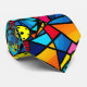 This necktie features a seamless pickleball pattern with a vibrant array of geometric shapes, predominantly triangles, creating a captivating visual. The triangles form the foundation of the pattern, creating an energetic grid-like backdrop. The lively colors include bright shades of green and blue, representing the pickleball court and the sky. The bold black borders provide a sharp contrast, reinforcing the structure of the design.