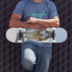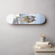 The skateboard features a visual design of a energetic Siberian Husky. The skateboard is adorned with a graphic representation of a Siberian Husky walking, capturing the image of this energetic and athletic dog. The choice of this design aims to convey a sense of dynamism and vitality, as the Huskies are known for their energy and enthusiasm. The combination of the form of transport, the skateboard, and the moving Husky image creates an interesting fusion between the functionality of the object and the artistic expression of design.