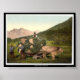 A beautiful, one-of-a-kind photochrom print of Engadine in Grisons, Switzerland. The photochrom process was one of the earliest efforts at bringing color to photography. It used high quality color inks which were laid down on paper with multiple lithographic stones, creating a beautiful hand-colored rendering. An application of a varnish coat gave the print a lustrous quality and added a depth and richness often found in more modern color photographs. These factors contributed to a unique and distinct print quality. This print would make an excellent gift for a friend, family member, or co-worker, or wall hanging for your private collection. It beckons a deep appreciation and warmness of times gone by.