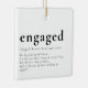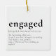 Celebrate the start of forever with this elegant engagement ornament featuring a heartfelt “definition” of what it means to be engaged. With the couple’s names beneath the bold word engaged, the design gently unfolds into a poetic tribute:
