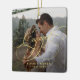 Engaged gold calligraphy script 2 photos keepsake ceramic ornament