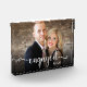 This custom 5 x 7 photo block that says "engaged" in a modern script font with hearts in white, your engagement date in a clean white font and your engagement photo would look fabulous in your home or office or be a wonderful gift for your loved ones. It's super easy to customize - just upload your photo and type in the date. It's that simple!