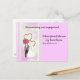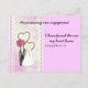 This engagement announcement has a stylized bride in a wedding gown and groom in a tuxedo with pink flower adorned, entwined gold hearts in background.and lace look trim. Pink themed. You can alter the text to personalize. On the front is a Bible verse from the Song of Solomon that says "I haa. On the back is your message and your names.
