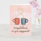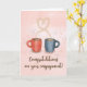 A doodle style watercolor painting of two steaming mugs of coffee. It is a cute and humorous way to congratulate two people on their engagement. The steam between the cups forms a heart. Together they will make a great blend!