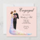 Celebrate the happy news of your engagement with your family and friends by sending out these beautiful engagement party invites. This modern design features an elegant couple dressed in evening wear and looking at each other lovingly. The pastel colors make for a stylish engagement invitation. This design is part of an engagement collection and available on envelopes, wine labels, table balloons, paper napkins, banners, favor tags, and favor boxes.
