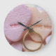 Great price for a very nice product. Arrived a day early - unheard of these days. The outside gold area has a little more orange tone to it than shown in the picture. Great packing so product can't get damaged. I used the same packing to forward the clock to my brother and sister-on-law for the 50th wedding anniversary. Printing was just as expected - lovely!