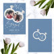 Engagement announcement card features engagement rings with couple's photo on it. On the back initial couple's names are inside the engagement rings.