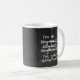Mug with a blackboard background and white chalk lettering. Engineer is spelled several ways but in the end, "I'm good with math".