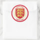 Very pleasant design showing the coat of arms of England within a circle shape made of the national colors.