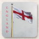 A close up photograph of a St.George's flag printed on a set of souvenir coasters.