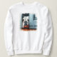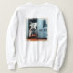 A white English Bulldog peeks his head through a slightly ajar door, his eyes full of mischief and a hint of challenge as if he’s telling his human, “Make me.” This playful and endearing image will be featured on a woman’s sweatshirt. The current typography can be changed and customized to your specifications, making it a perfect gift or personal keepsake.