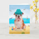 A English Bulldog sitting on beach is a perfect gift idea for someone who love this dog breed.