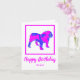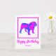 English Bulldog silhouette in crazy hot pink and blue bright modern abstract pattern. Funny birthday message inside can be changed to anything you want. Personalize with name below the Happy Birthday sentiment.