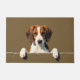 The muted olive brown background adds a natural and earthy tone, perfect for welcoming entryways. Designed with extra space at the top and bottom, it allows easy personalization with names, welcome messages, or custom text—making it ideal for unique dog-themed doormats and thoughtful gifts.