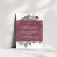 Designed to coordinate with our floral English Garden wedding collection in Marsala. Rich and elegant in muted shades of blush pink and luxe burgundy, our English Garden guest details card features a background of pink and green watercolor peony flowers with a sheer marsala overlay. Replace the sample text with the key details of your wedding celebration. Wondering what information to include on a wedding invitation insert? Consider details like hotel accommodations, group codes, transportation, directions, welcome reception information, and your wedding website url. You can even upload a map to the reverse side using the Customize function.