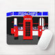 Collage of traditional English icons - red telephone box and red postal box in front of a fish and chip shop. This design has been created using photographs which have been digitally manipulated. The perfect mousepad for the person who loves all things English.