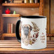 A pretty autumn wreath in tones of cinnamon brown, tan, and cream surround the watercolor image of a majestic English Mastiff Dog. The image is printed twice on the mug, with your custom text between them.