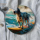 Immerse yourself in the playful world of canine adventure with this captivating painting. A spirited dog takes to the waves, skillfully riding the surf on a sun-kissed beach. The vibrant artwork beautifully captures the essence of beachside excitement as the dog fearlessly rides the waves, embodying the spirit of fun and freedom. With a harmonious blend of colors and dynamic brushstrokes, this piece brings the joy of surfing and the beach right into your space, making it a delightful addition to any art collection