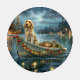 Set sail into the magic of the holiday season with this beautifully detailed illustration, showcasing a proud dog sitting in a festively decorated boat, gliding across a serene Christmas lake. The twinkling lights from nearby pine trees reflect off the water, casting a warm, festive glow that enhances the cozy ambiance. Ornaments dangle from the boat's sides, while glowing lanterns light the way, creating a scene that captures the true essence of Christmas warmth and joy. This nostalgic artwork brings a touch of holiday magic to any space, perfect for those who cherish the spirit of the season.