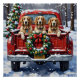 Bring graceful, feathered elegance to your holiday season with this beautiful English Setter Christmas design! This festive scene features three handsome, long-coated English Setters sitting attentively in the back of a classic red pickup truck, nestled in a picturesque snowy winter forest. The vintage truck is adorned with a vibrant Christmas wreath, twinkling with red and gold ornaments and warm, glowing lights. Soft snowflakes gently fall, enhancing the winter wonderland effect. A decorated Christmas tree in the background completes this heartwarming picture, making it an ideal Christmas gift for any English Setter owner, dog lover, or admirer of festive and beloved sporting dog art. This design perfectly captures the joyful spirit of the holidays.