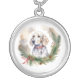 English Setter Christmas Wreath Festive Pup Silver Plated Necklace