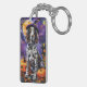 English Setter Dog Halloween Witch And Pumpkin Keychain