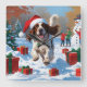English Setter Running in Snow with Christmas Hat Square Wall Clock