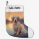 Perfect! Exactly what I ordered! I uploaded a picture of my blue chow, and the screen print was incredible. the back side of the stocking was the red and black checkered print. my puppy's name was also printed on the cuff of the stocking. PERFECT! Highly recommend this product! My puppy's name was screen printed onto the cuff of the stocking, the font was perfect!