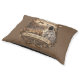My dog instantly fell in love with this bed. It's super soft and plush. She hasn't stopped laying on it and even when I move it, she jumps on it and gets moved with it. The removable cover is easy to take off and wash. Highly recommend this and it makes a great gift. Fanstastic printing. The colors are 100% accurate and bold.