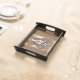This is a well made, sturdy wooden tray with a flawless black finish and lovely map on the tray surface. It is both vintage & modern at the same time. Looks exactly like the photo; does not disappoint. So nice to find something of quality individually made and not the mass-produced 'shabby chic' merchandise seen in stores. I am so pleased to be able to give this to my college-age niece for her birthday. This can be used as a tray to hold jewelry or toiletries, or hung on the wall as art. The map surface is sealed (it is slightly shiny) so would be moisture resistant. It is well worth the asking price but I was able to apply a sale code as well. Very happy with my purchase. Map is crisp & clear and sealed with a water-resitant finish.