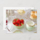 Postcard featuring English Strawberries, scones, clotted cream in a vintage table setting.