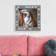 Add your own dog's photo to this square art canvas and then personalize it with your pet's name. This is a beautiful piece of artwork that frames your picture with images of hearts, paws and bones. The gray background can be changed to match your photo. What a perfect gift for dog moms and grandmas as well as all pet lovers. A perfect way to remember your dog angel!