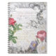 Lovely vintage roses and mixed bouquet on aged parchment with ornate engraved floral swirls and French handwriting.