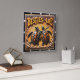 This striking square wall clock features a highly dimensional, vibrant illustration of two sea turtles side-by-side. The entire design is rendered in bright orange, dark brown, and black tones, strongly suggesting a carved relief or Engraved Wood Look. The turtles have highly detailed, textured shells in orange and black, and are positioned on a textured tan sand backdrop. They are surrounded by a raised border of stylized, brown sand dunes. The large, three-dimensional embossed text "BESTIES FOR LIFE" is carved across the top. The clock face features a simple clock face border with large, white, numbered tick marks (1 to 12). The artwork is surrounded by a dark, textured decorative border that resembles a black wood frame.
