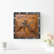 Engraved Wolf Pair Mountain Pine Square Wall Clock
