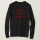 I love this shirt. I had written to the artist asking her if this picture was available on a shirt, and she wrote me back telling me where I could find the shirt. These shirts can be custom made to have a different saying. I loved this saying and went with it. The artist wrote me back later to tell me that she had seen my order go through. How's that for service? Pretty special. It's just as displayed. Perfect!