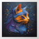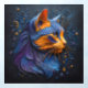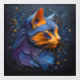 A captivating portrait capturing the beauty of a cat's head looking in style. This abstract artwork features embossed lines in hues of blue, orange, and purple, set against a dark shady blue background. Discover the mystery of this artful feline gaze, adorned with subtle embossed color elements.